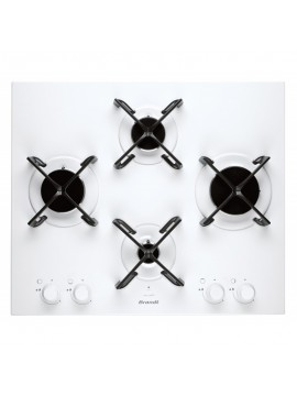Plaque de cuisson Gaz - 60 cm - Couleur Blanc - 4 foyers - 4 grilles noir mat - Type de commandes: Manettes - Système d'allumage: Train étincelles - Puissance maxi gaz: 7.7 KW - Equipement gaz d'origine: Naturel 20 mbar - Système de sécurité gaz: Par thermocouple - Intensité 10A - Tension 220-240V - Dimensions: 50 x 610 x 520 mm - Poids: 12 Kg (plus)